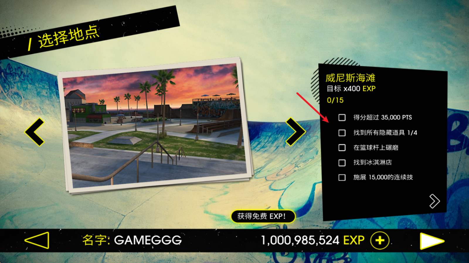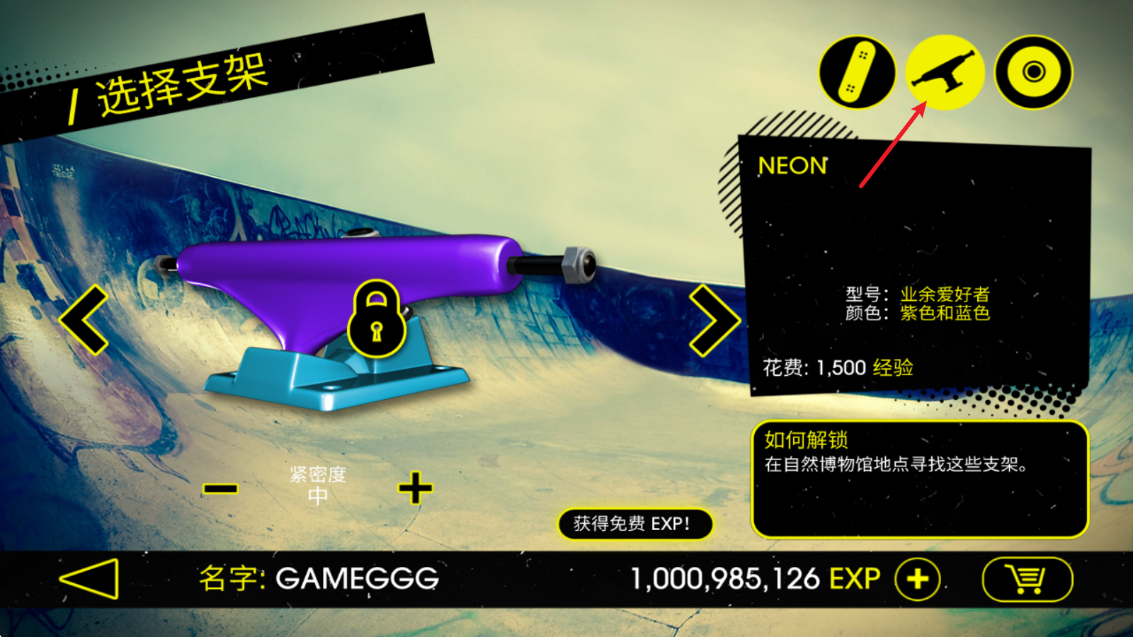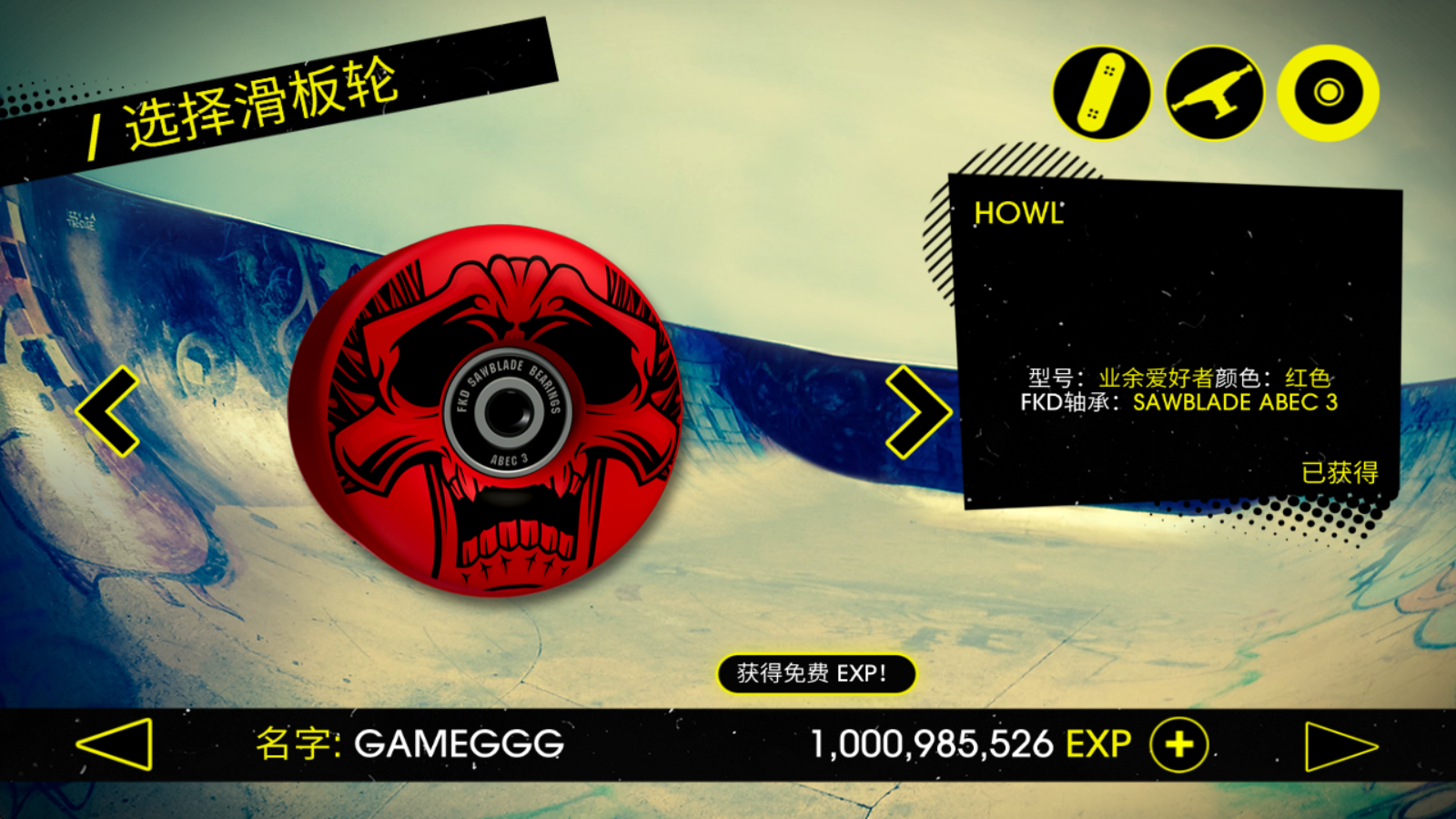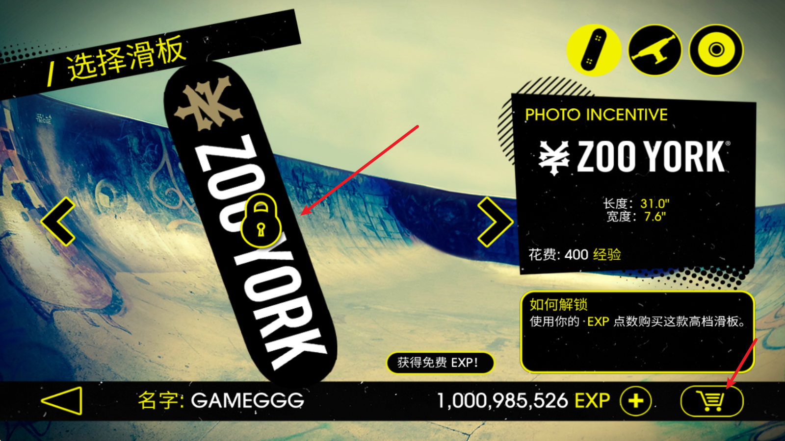 1在开启游戏前,玩家能够自主挑选滑板,其中一些滑板需要积累经验才能解锁使用。