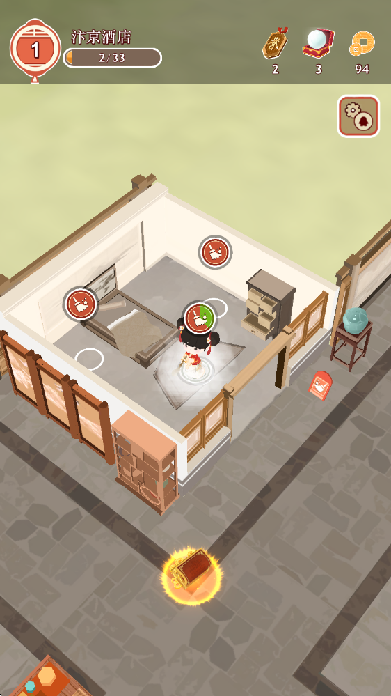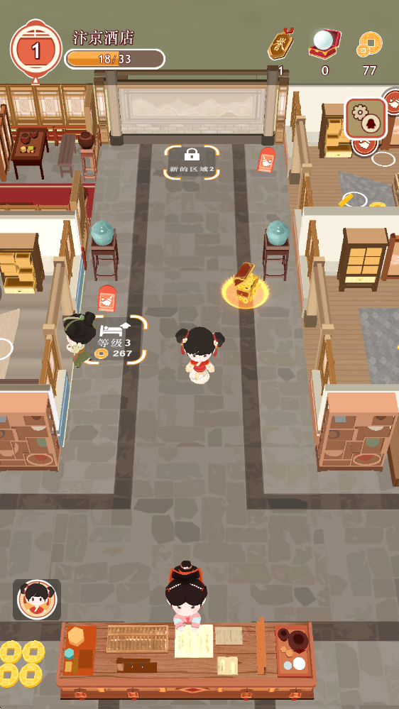 跑腿掌柜,一款古风的客栈模拟经营游戏。在游戏中玩家将会成为汴京酒店的老板,从零开始建设起这家酒店,刚开始你需要亲自的安排客人入住、打扫房间卫生、为酒馆送酒等等,后续当有了一定规模后,你就可以去招募专业人士来替你完成这些工作,一步步的去提升酒店的经验效率。当然,有时候也会出现一些有着特殊要求的客人, 这时候就需要老板你亲自出马,满足客人的一切需求,逐渐的去打响自己酒店的名声!