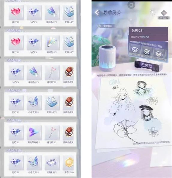 3、主线相关奖励:普通主线通关9次可获得60钻;困难主线通关9次可获得1次璀璨邀请函;心意之期通关6次可获得1张璀璨邀请函;玩呐每个小节通关可获得10钻。