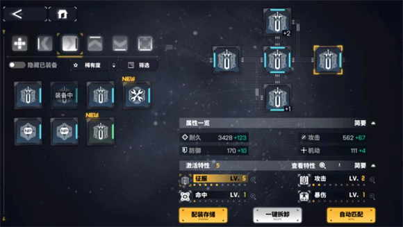 2每个角色都有三类强化战力的途径,除了升级能直接增加基础属性外,还能借助芯片装配、武装技能升级以及天赋跃升等方式来提升。每个角色可装配五枚不同位置的芯片(上、下、左、右、中),由于角色的功能定位存在差异,所以推荐装配的芯片类型也各不相同,主打输出的角色通常会选择征服者、收割、切割这类芯片,以此强化输出表现。此外,芯片本身也有稀有度和等级的区分,通过提升芯片等级或更换品质更优的芯片,能更高效地增强角色的战斗力。