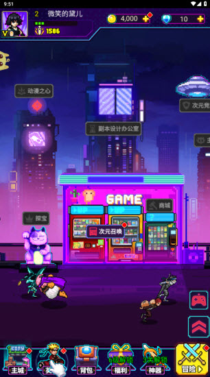 赛博朋克的画面看上去科幻感满满,精美的像素风是我最爱的,然后英雄都能通过副本获得,整体体验还是比较出色的。