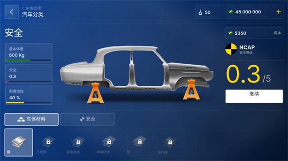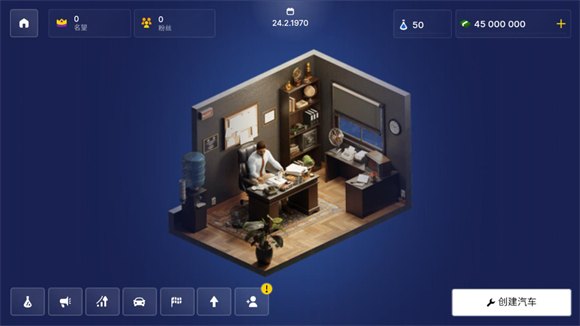 10、在主界面点击下方第一个按钮可以研发不同的汽车类型和各种材料和配件。