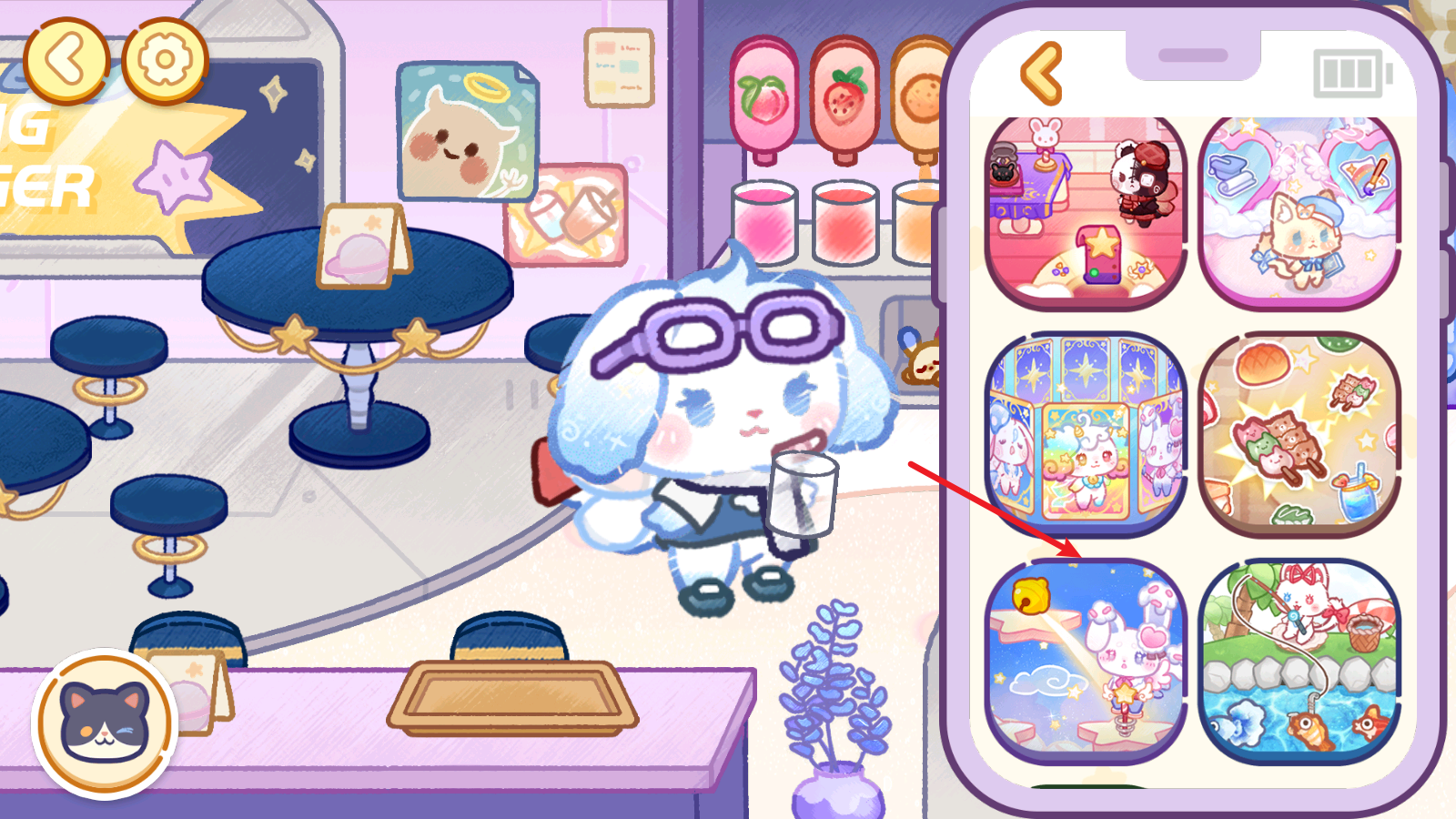 6、打开右下角的手机,在这里可以玩到各种趣味的小游戏。