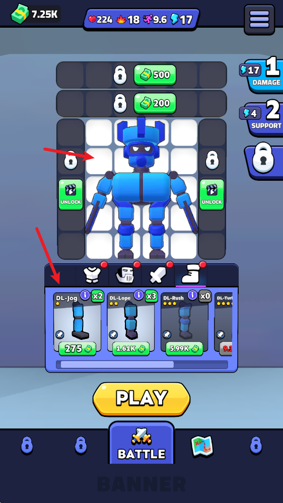 1、游戏中,我们需要自己拼接机器人的各个部位,组成一个完整的机器人。