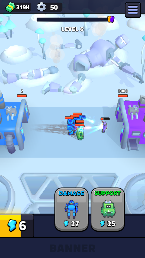 3、随着关卡的推进,我们将会解锁出更多强有力的机器人和相关部件,提高自己机器人军团的战斗力。