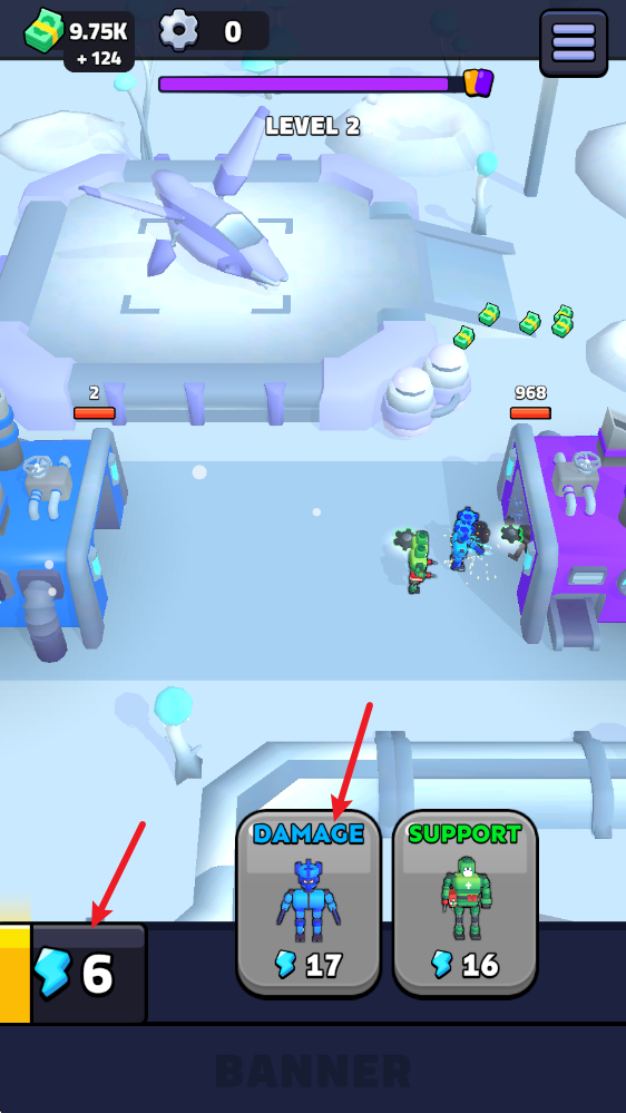 3、战斗中点击下方的机器人即可消耗能量召唤。