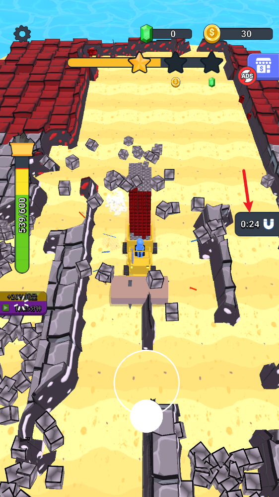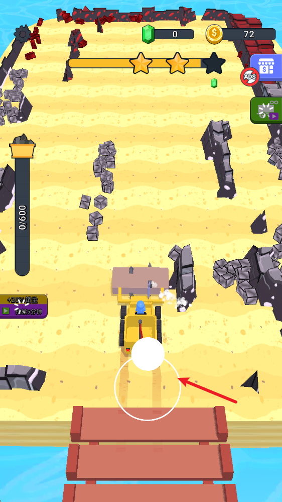 1进入游戏后,只需拖动屏幕就能操控挖掘机移动。