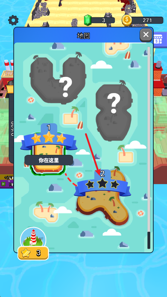 7、每一关的进度会显示在上方,当进度达到一颗星时就能解锁下一关,而满星状态意味着这关完美通过。