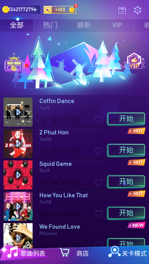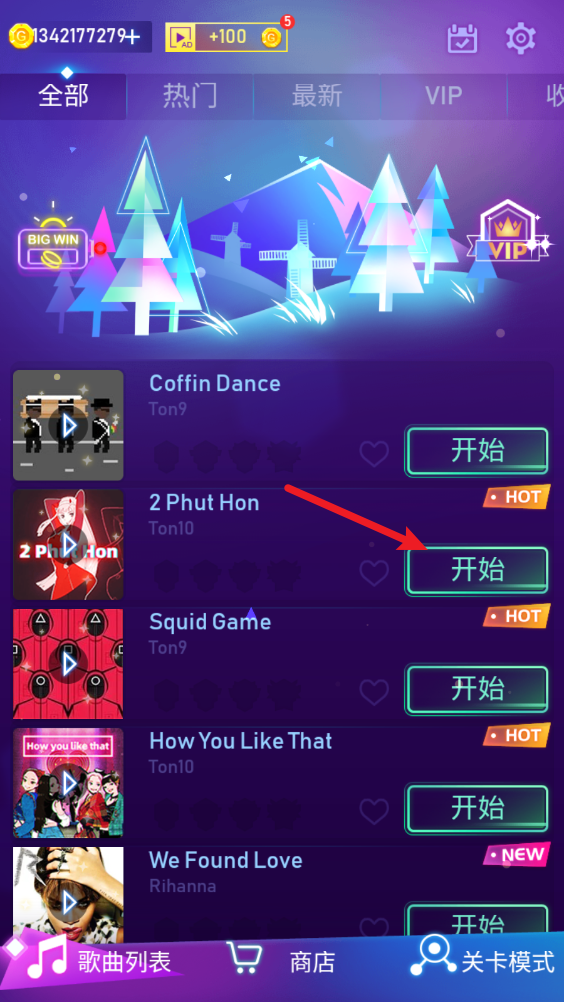 1、进入游戏之后,我们可以选择自己喜欢的歌曲进行挑战。