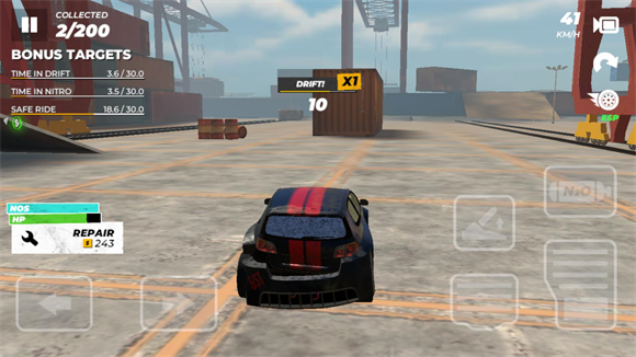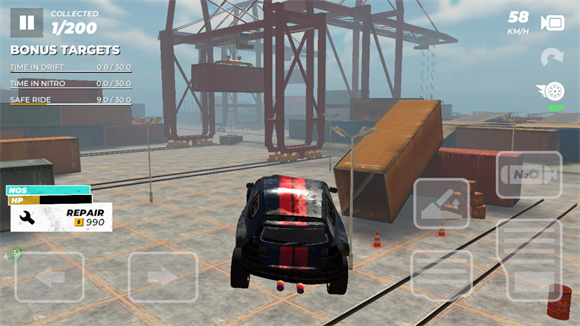 5、正式开始后点击屏幕开始驾驶,左边控制车辆的转向,右边控制前进、后退以及氮气冲刺。