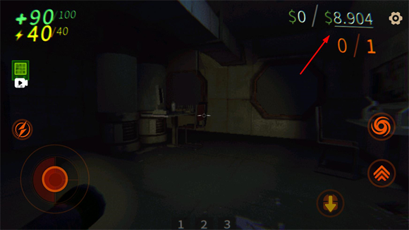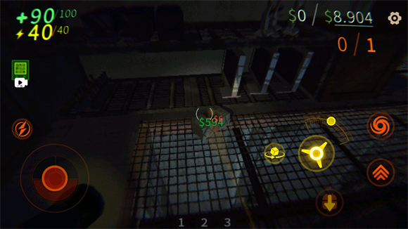 4、点击新游戏后会进入地图,正式开始后左边控制移动,右边是跳跃、蹲下,翻滚按钮。中间下方的123是口袋,可以放入拿到的物品。