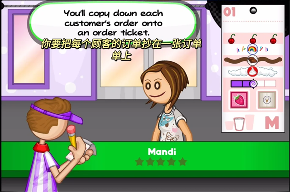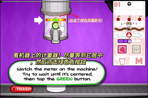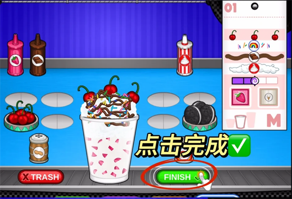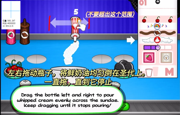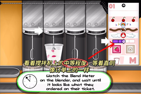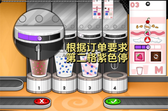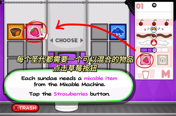 3、没一个圣代都需要一个可以混合的物品,根据订单上的要求点击按钮