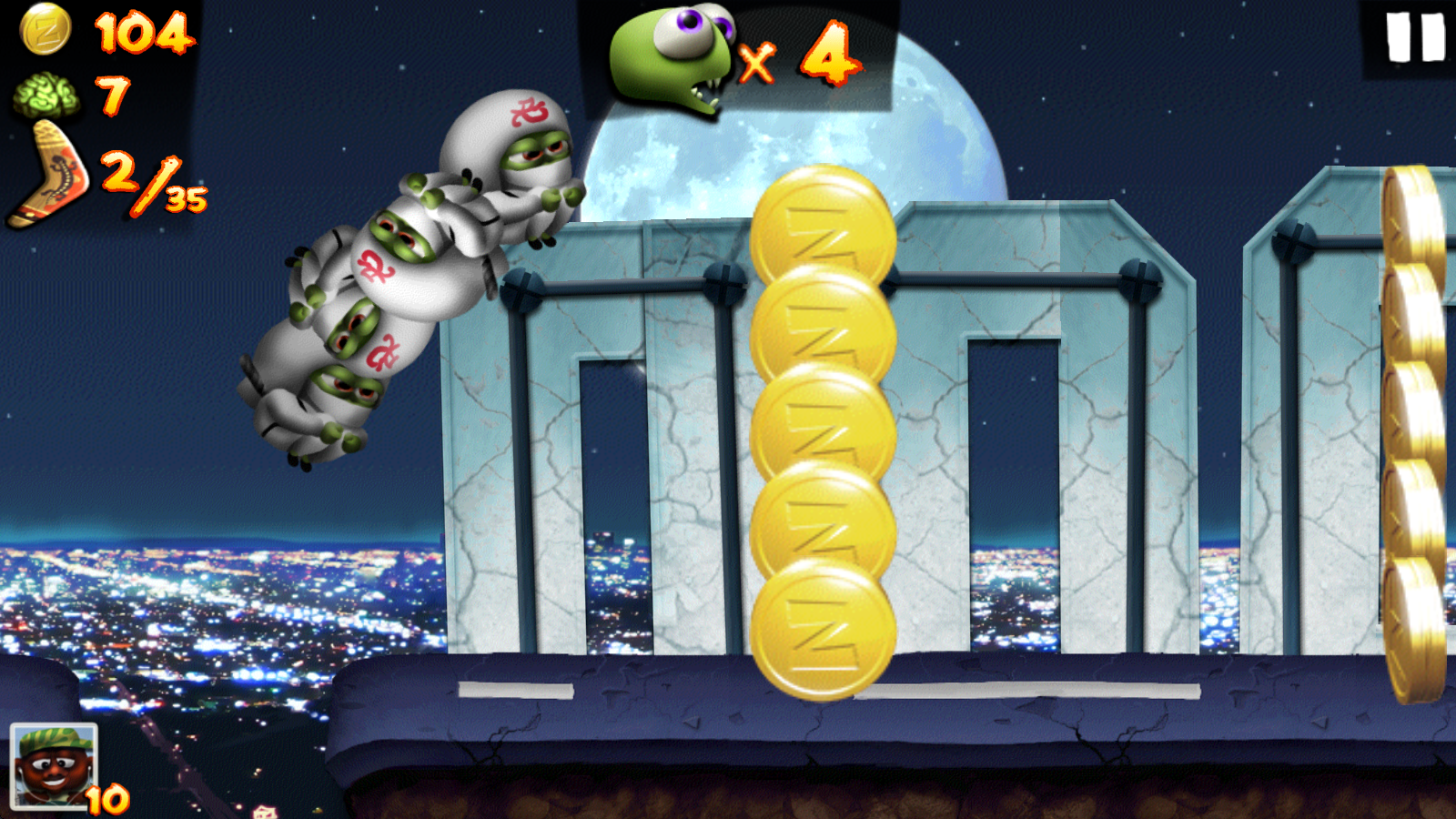 1、进入游戏后,点击屏幕即可控制僵尸跳跃,沿途拾取金币道具。