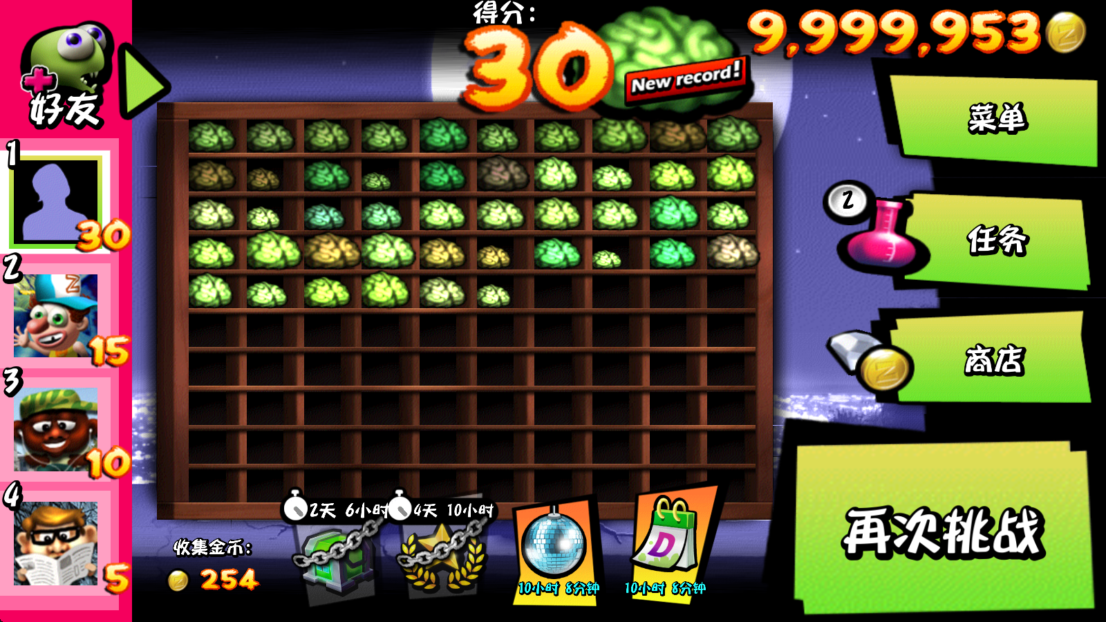 7、所有僵尸阵亡后就会结束游戏,并结算奖励。