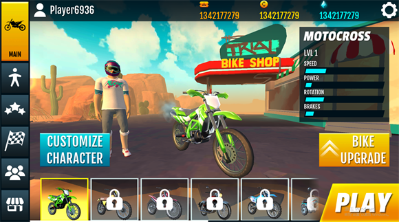 1、丰富多样的自行车可选:游戏初始你会获得一辆越野车,不过随着游戏进程推进,你能够解锁更多不同类型的自行车。