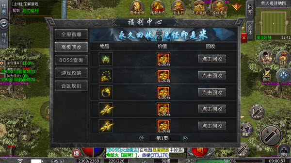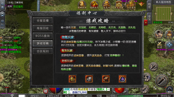 开启武林至尊(仅需20万元宝),轻松拿下冰雪之城,小怪掉落所有物品(首爆奖励高达8512万元宝,只要合区前未产出,奖励永久有效),看到的就是实际能获得的。