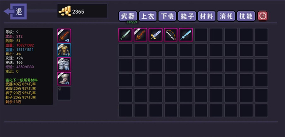 1进入游戏后,持续刷取右侧的史莱姆,合成出高级钥匙,接着进入高级副本,去获取武器装备。