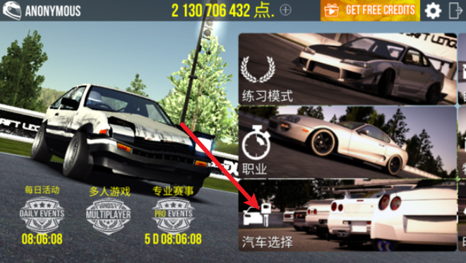 3、点击主界面最下方的汽车选择,在这里可以挑选各种汽车进行驾驶。