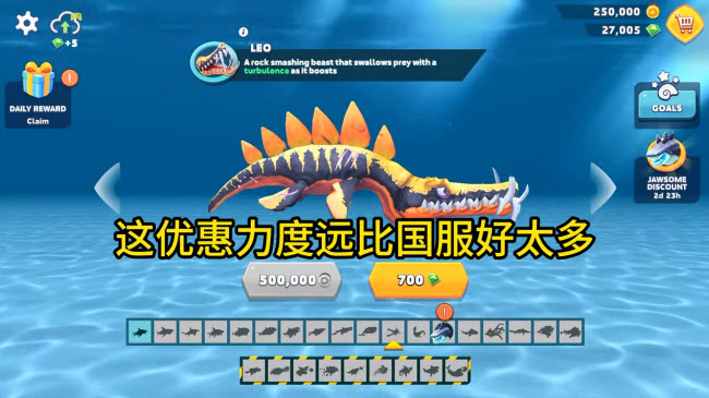 国际服:可以直接解锁最大的鲨鱼,并且兑换所需的金币和钻石数量也是要小于国服的。