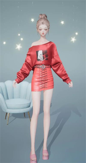 3中式风格的搭配需包含三件带有中式标识的服饰单品,同时整体色调要体现喜庆感,选择红色即可,只需将一条连衣裙染成红色就能满足要求。