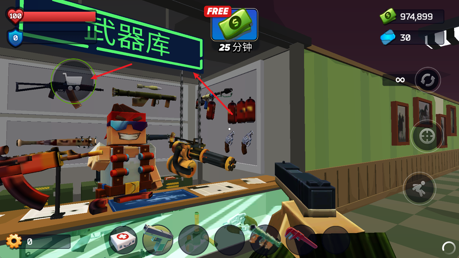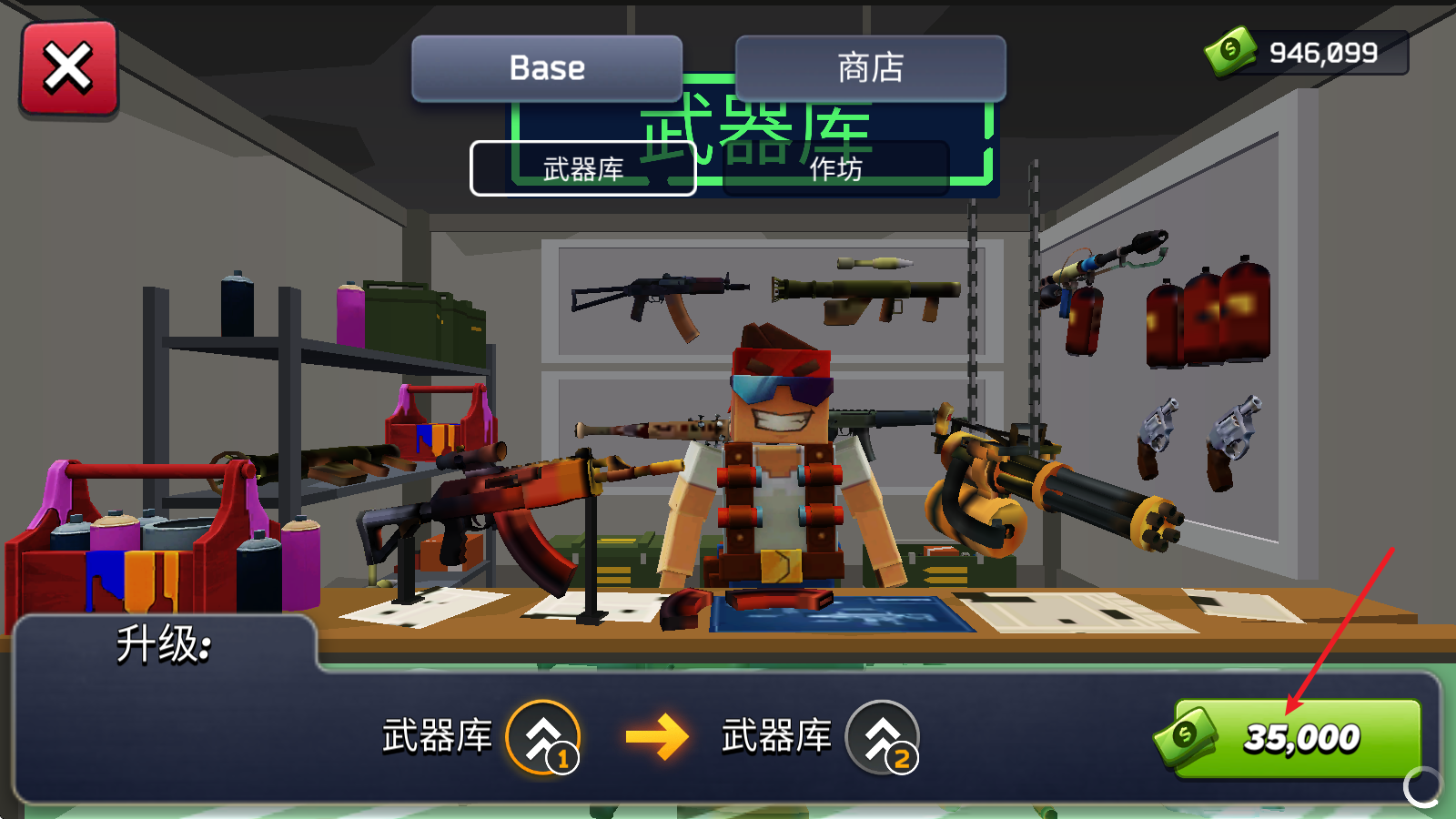 1、在基地里,找到武器库并走到它附近,左边就会弹出商店的按钮。