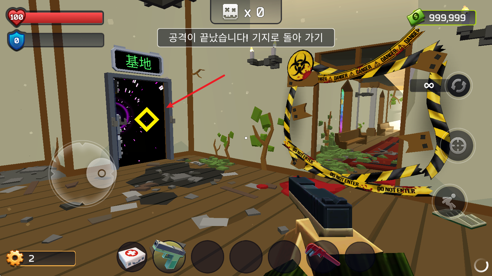 4、把关卡里的僵尸全部消灭后,我们就能借助传送门返回基地了。