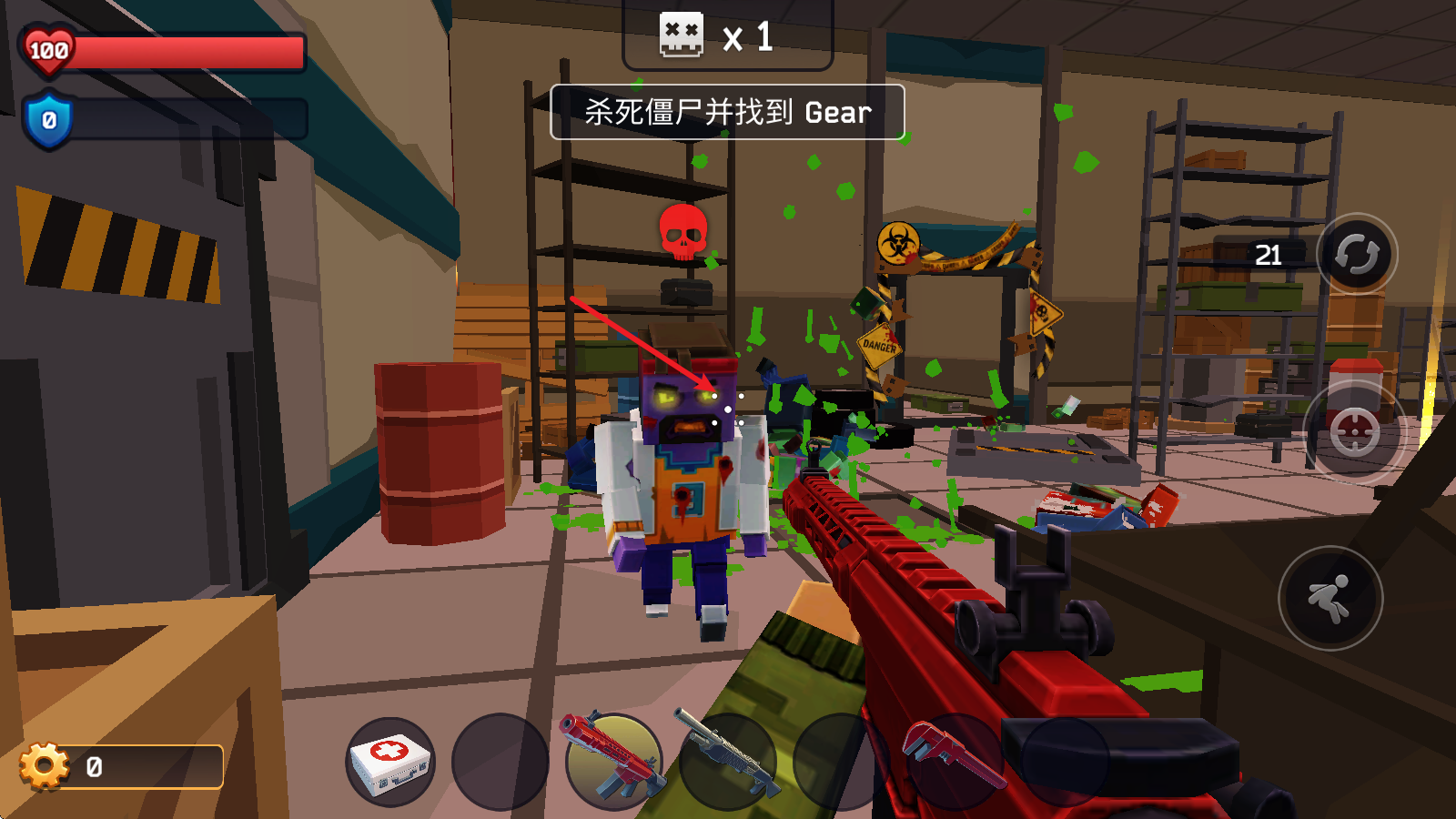 2、将准心对准僵尸即可自动射击。