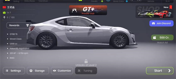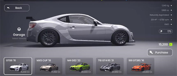 5、在主界面点击“Garage”(车库)按钮即可进入车库界面,玩家可在此消耗金币解锁各类不同车型。