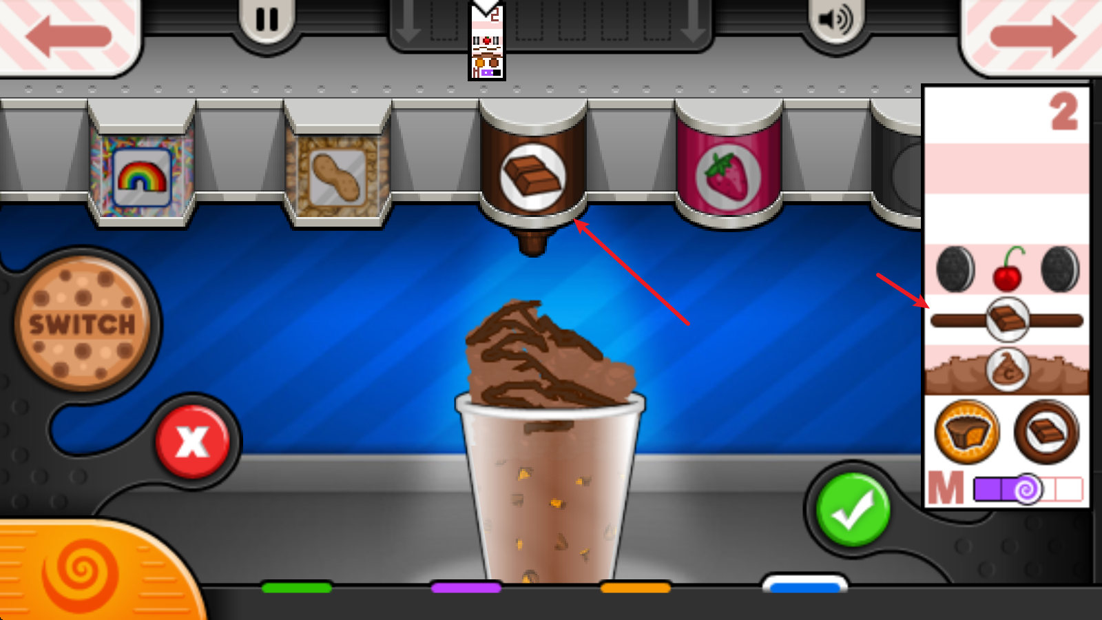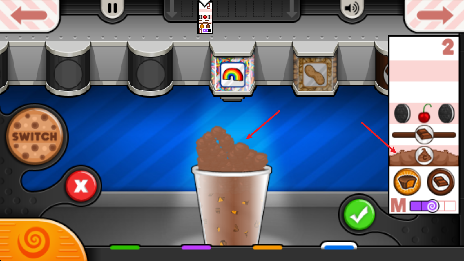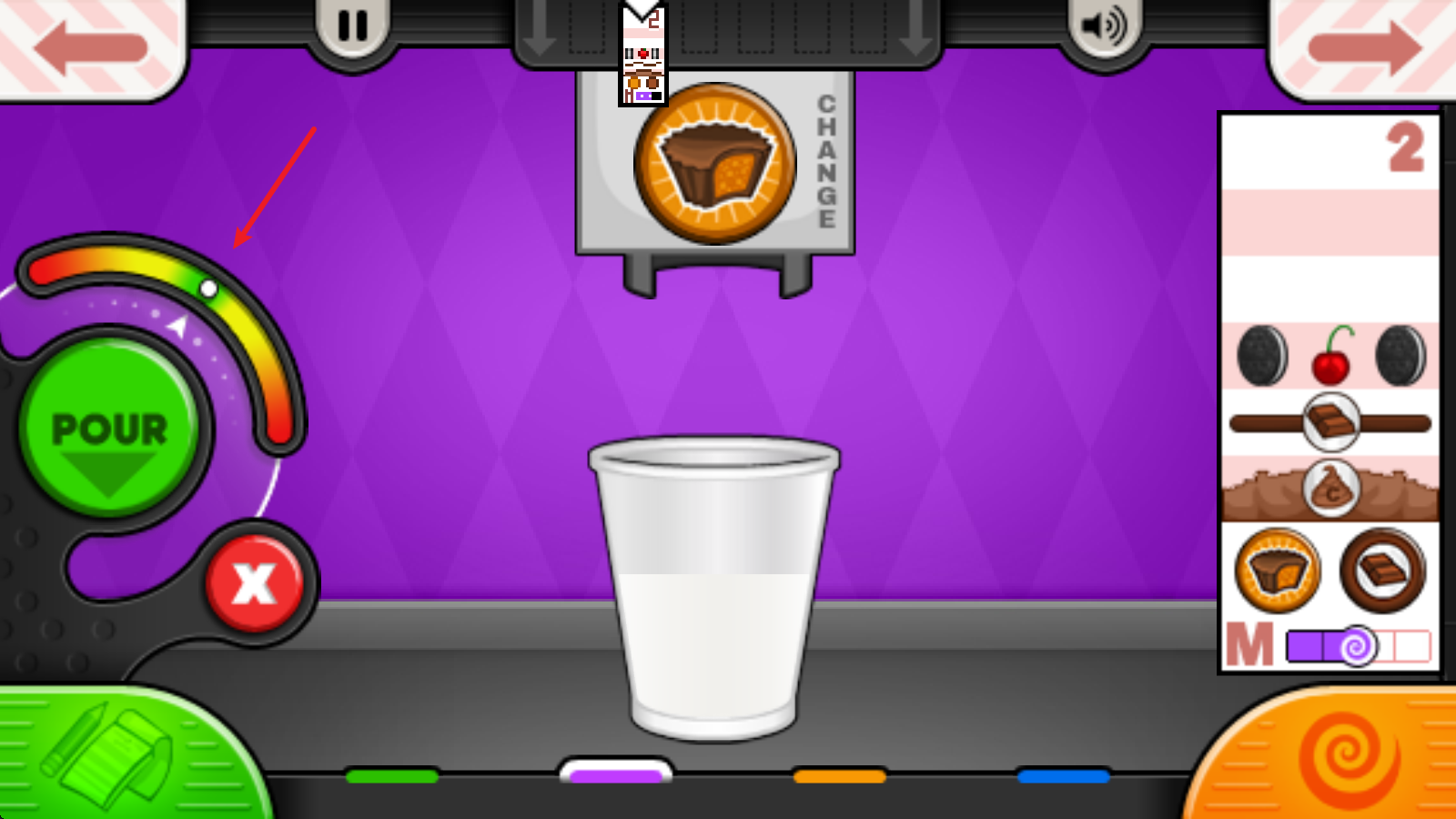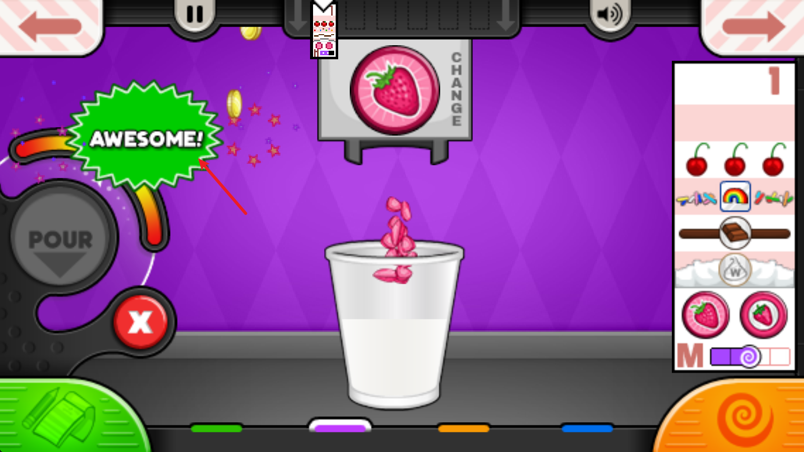 1要想拿到高分,制作过程里的细节必须把控好,第一步就是放料这一环节——得选对食材,还要又快又准地停在绿色区域。