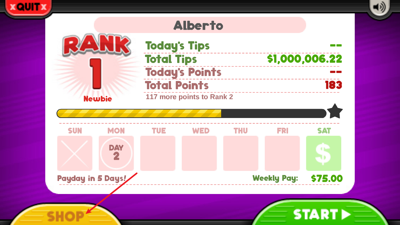 1第一步要去商店选购一些家具,需要点击界面左下角的“shop”按钮。