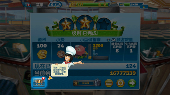 2、顾客吃到自己想要的食物,就会给与金币和小费在桌子上,你需要点击桌子上的货币来获取。