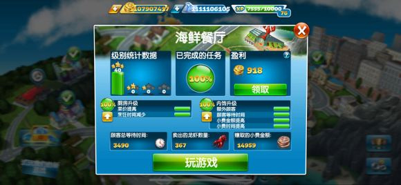 3、游戏里有成百上千的升级选项,让你的厨房设备和内饰更加高级,提升效率。