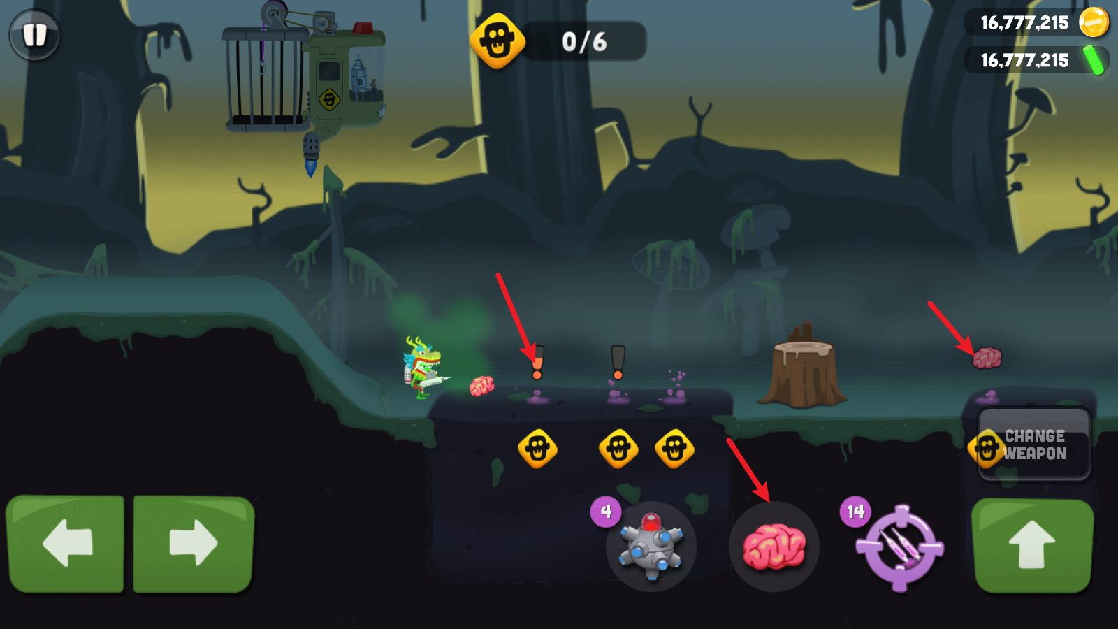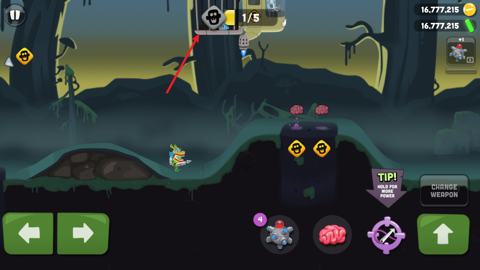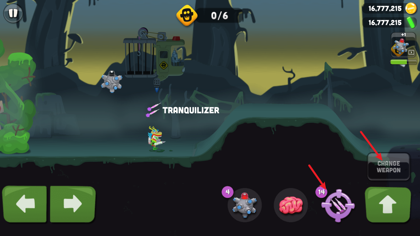 2、点击右侧黑色的按钮,可以切换自己的武器,一个是抓捕的爪子,另一个则是有使用次数的武器。