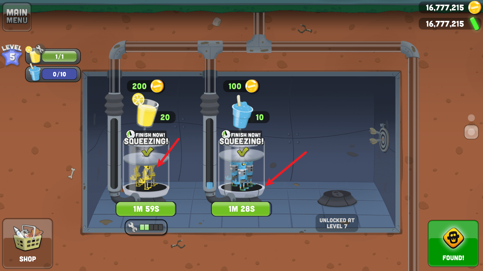 3、除了抓捕僵尸外,你还要升级自己的榨汁机工厂,让榨汁机的制作效率更高,生产出更多的果汁!