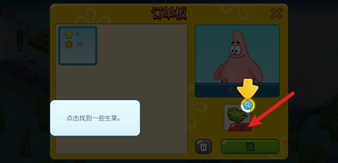 8、接着就能看到一些订单,例如图中需要生菜的派大星。