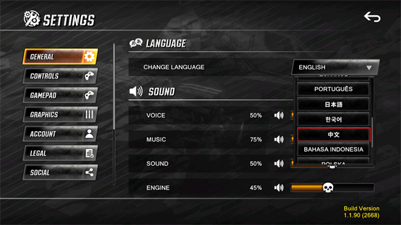 3、找到中文选项就可以将游戏设置成中文版了。