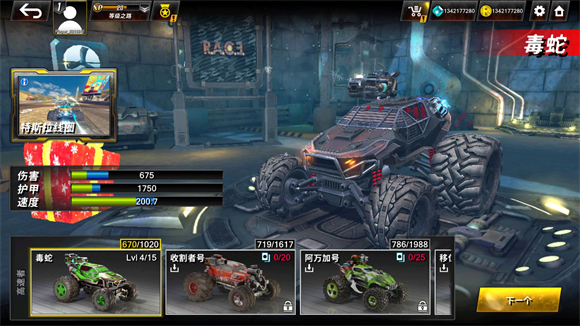4、选择好关卡后可以选择闯关的车辆。