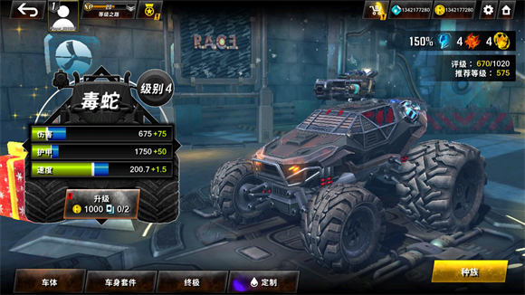 5、点击车辆后能对车辆进行升级和解锁套件。
