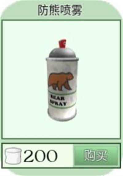 6、防熊喷雾:(价格:200棉花糖)应对野外出没的野熊,靠近熊后点击屏幕使用,熊会立刻跑开。