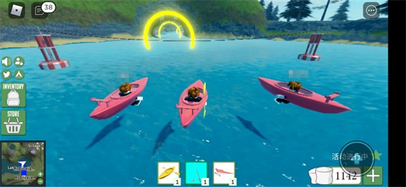 3、皮划艇在使用皮划艇的时候,方向键向左人物只会向左方向拨水,同理向右方向也一样,所以要使船前进需要左右开弓,或者移动方向键直直向前,但是稍有偏移就会向左或向右滑行。