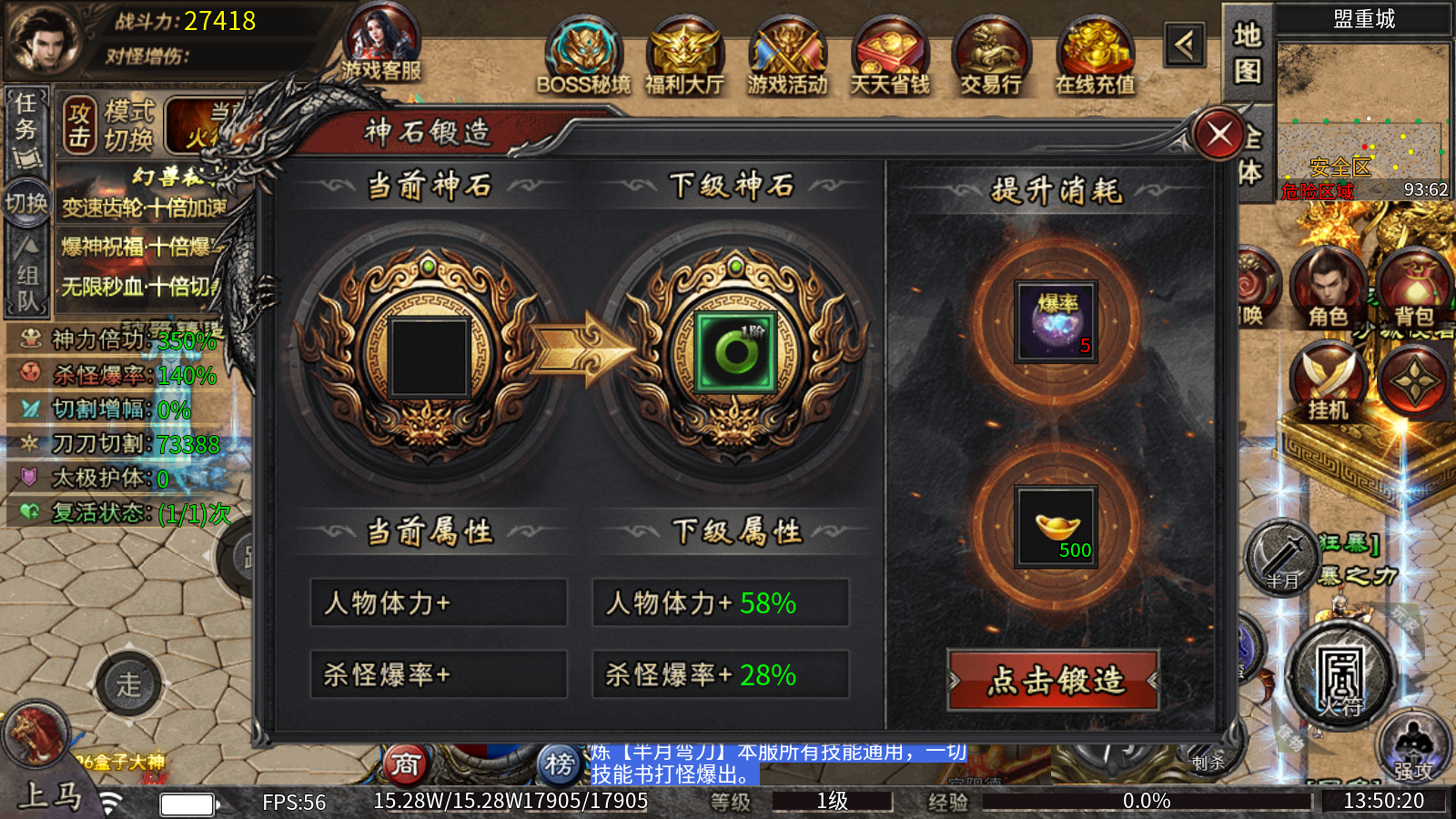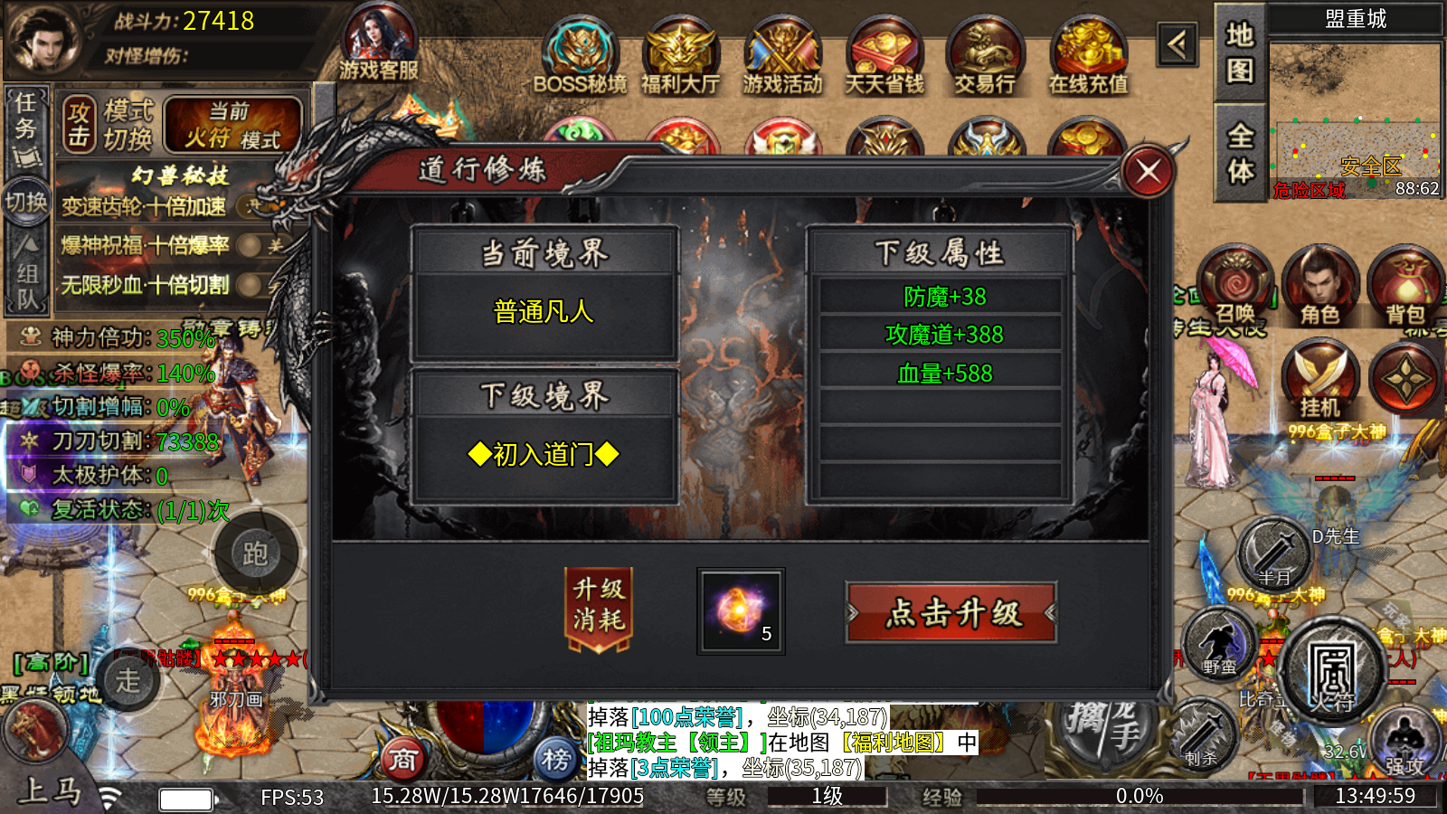 3、《杀怪爆率》:提升人物血量以及杀怪爆率!打怪获宝必升功能。