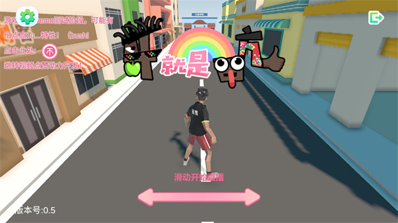 2、左右滑动屏幕可以控制甲亢哥移动,在点击过程中需要尽量避开各种障碍物。