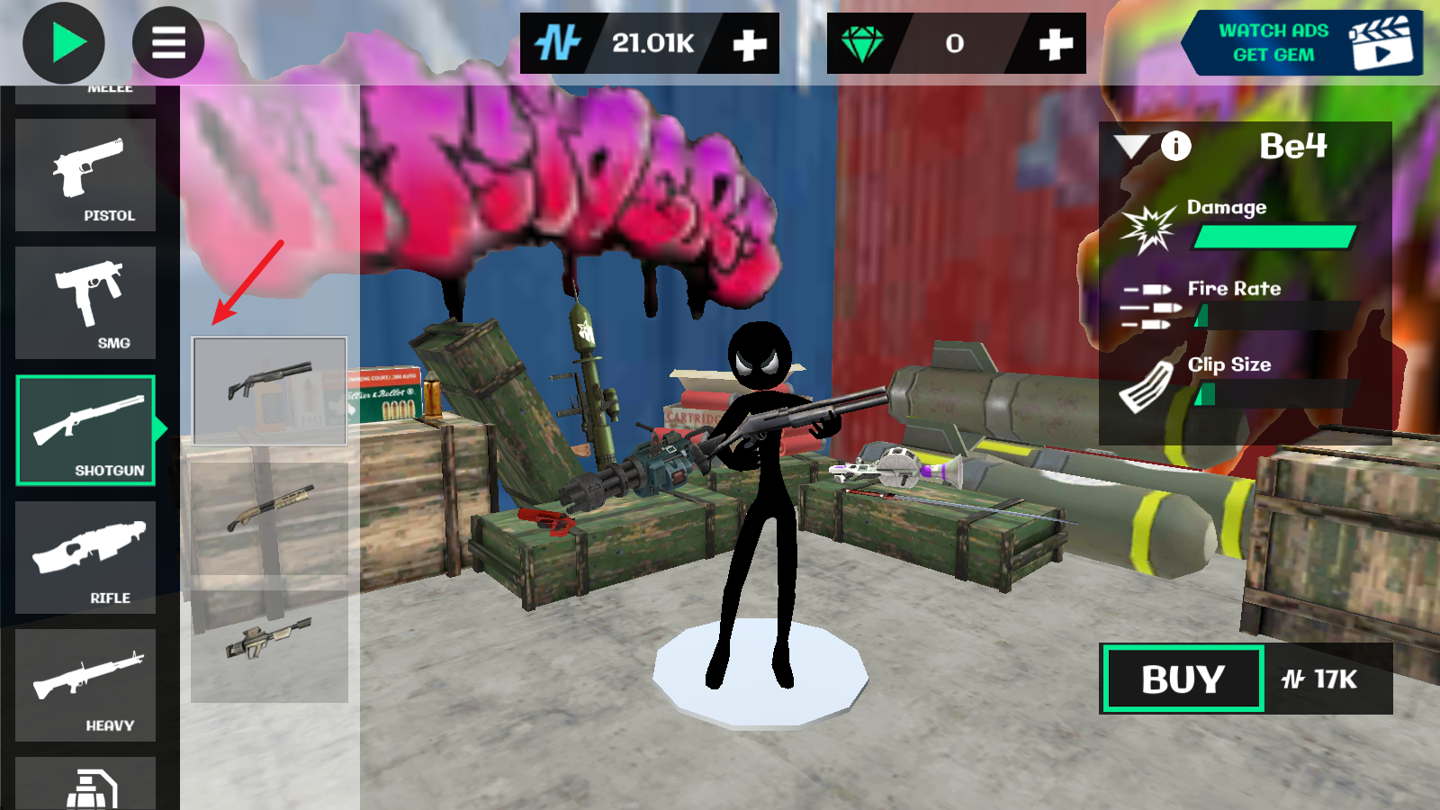 2、接着在左侧就可以看到许多不同类别的武器,选中后即可购买。