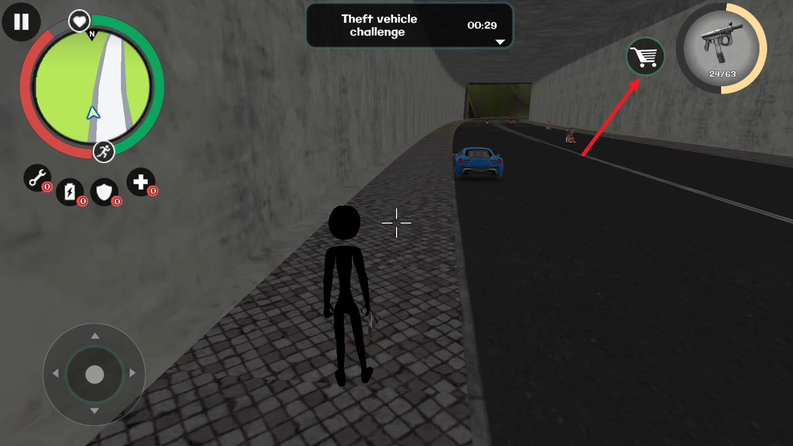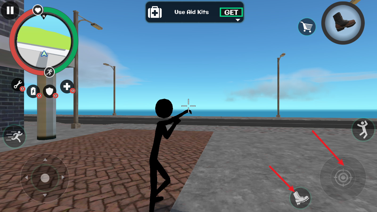 1、进入游戏后,左侧摇杆控制火柴人移动,左侧按钮还能加速。