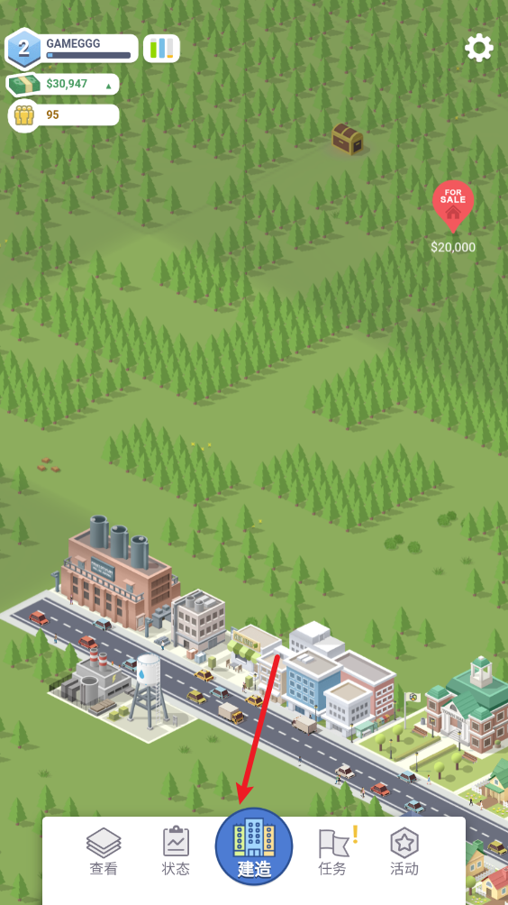 1进入游戏界面后,找到底部的建造按钮并点击,即可开启城市的建设流程。