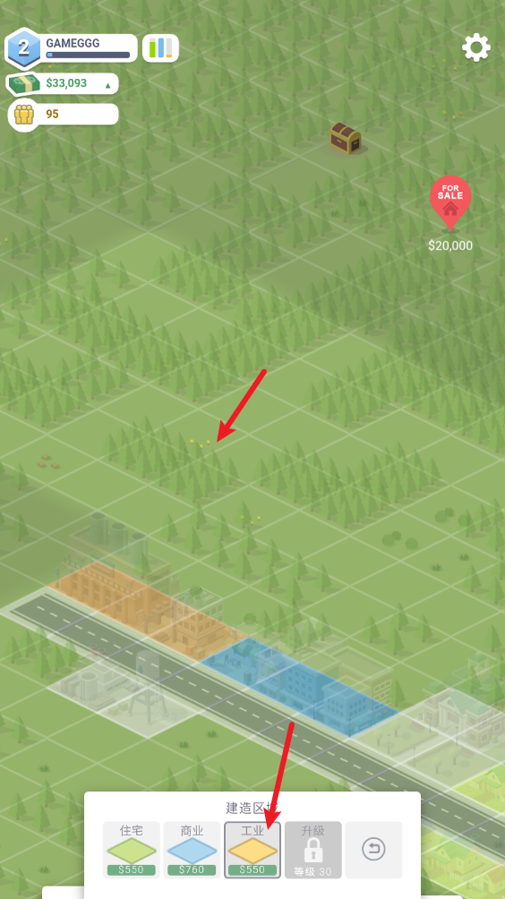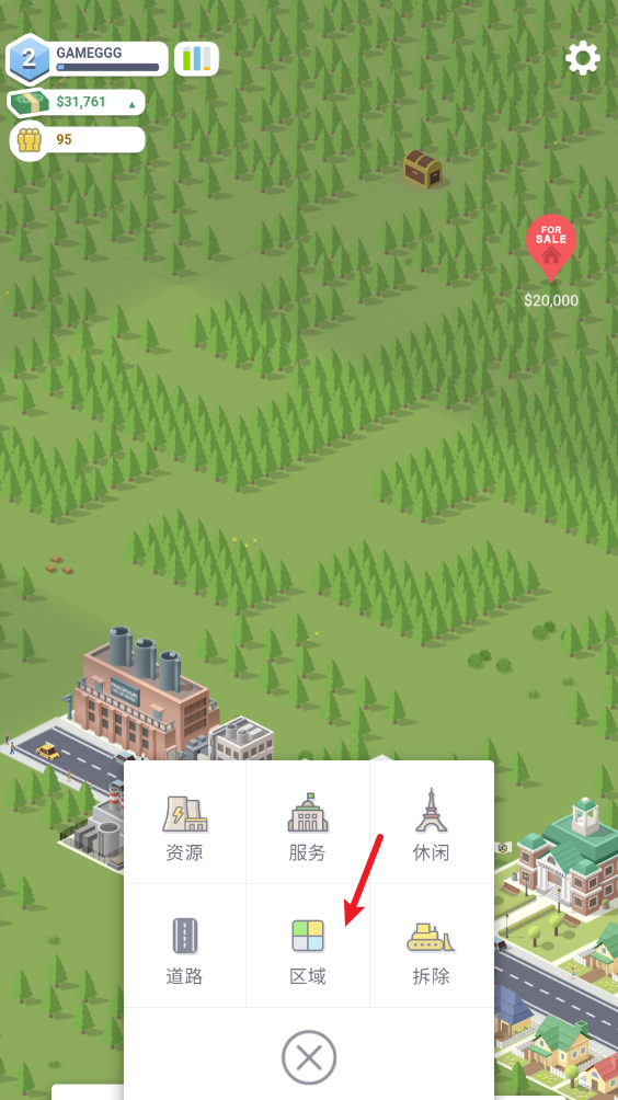 2打开建造界面后,我们第一步是选择区域,在区域选项里可以挑选工业区、商业区、住宅区等不同类型的区域来推进发展,选定后在地图上拖动就能完成建设。
