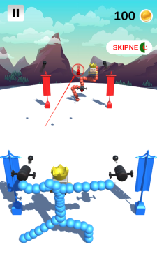 2在完成武器绘制后,用手指在屏幕上按住并滑动以调整发射角度,待准星锁定敌人时松开手指,让武器沿着预设轨迹精准命中目标,从而击败对手。