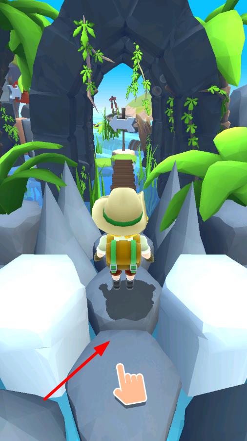 2在岛屿区域探索移动时,需注意地面可能存在的尖刺类危险装置和会滚动的石块障碍物,通过点击屏幕来启动相关的机关控制部件,同时收集四处分布的能量类结晶道具,以此来开启尚未解锁的新区域。