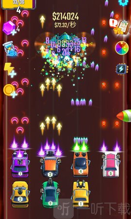 1.不断点击以合成更多高级赛车来赚钱;