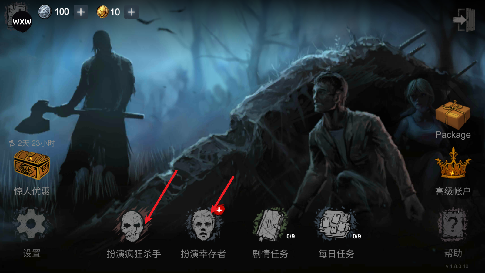 1、开始游戏前,我们可以选择成为疯狂杀手或者幸存者。